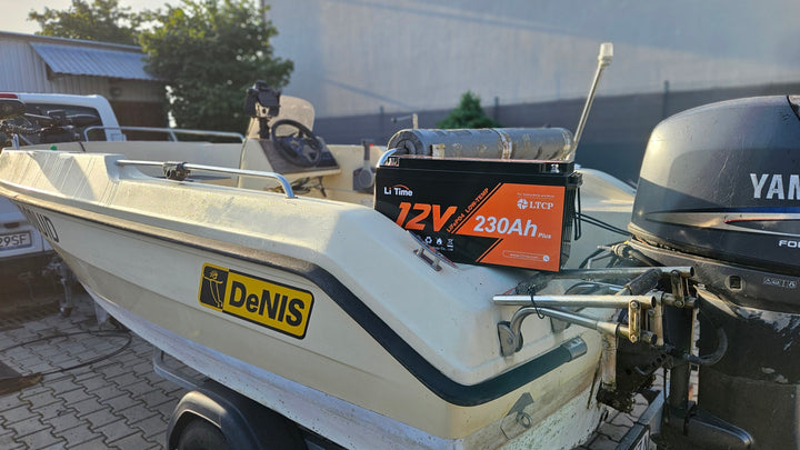 una batteria auto “normale” è pensata per spunto breve; una nautica deep-cycle (es. LiTime LiFePO₄) è ottimizzata per scariche prolungate, più cicli e peso ridotto.